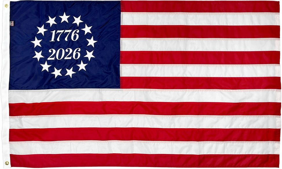 A high-demand item, our Commemorative Betsy Ross Flag features 13 embroidered stars arranged in a circle and 13 sewn stripes.