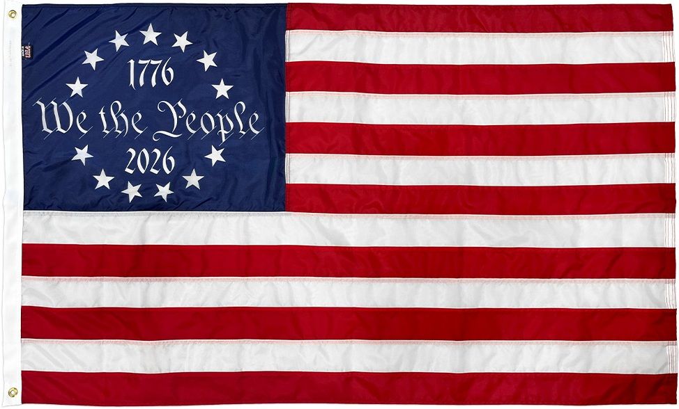 | 250 We The People Betsy Ross, Printed Star Field, Sewn Stripes Nylon Flag
